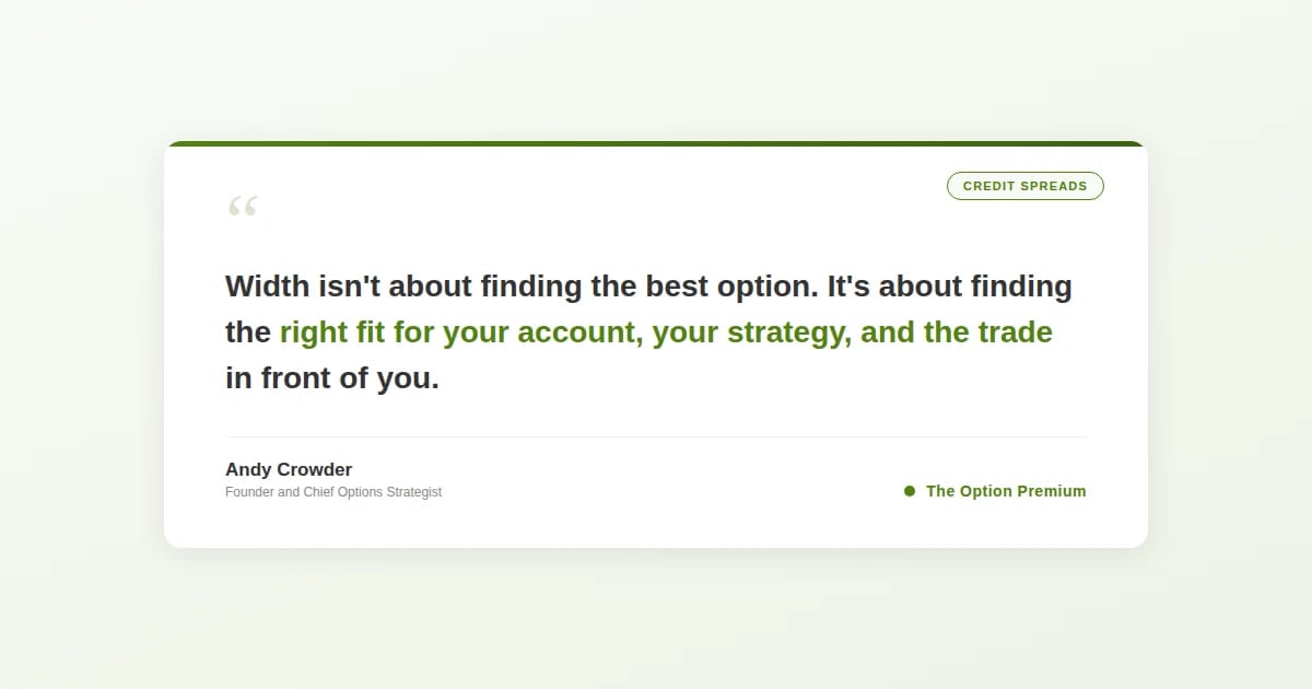 Learn which credit spread width is right for your account. Compare $2, $5, and $10 wide spreads on ROC, max loss, 100-trade performance, and a 3-variable decision framework for matching width to your situation.