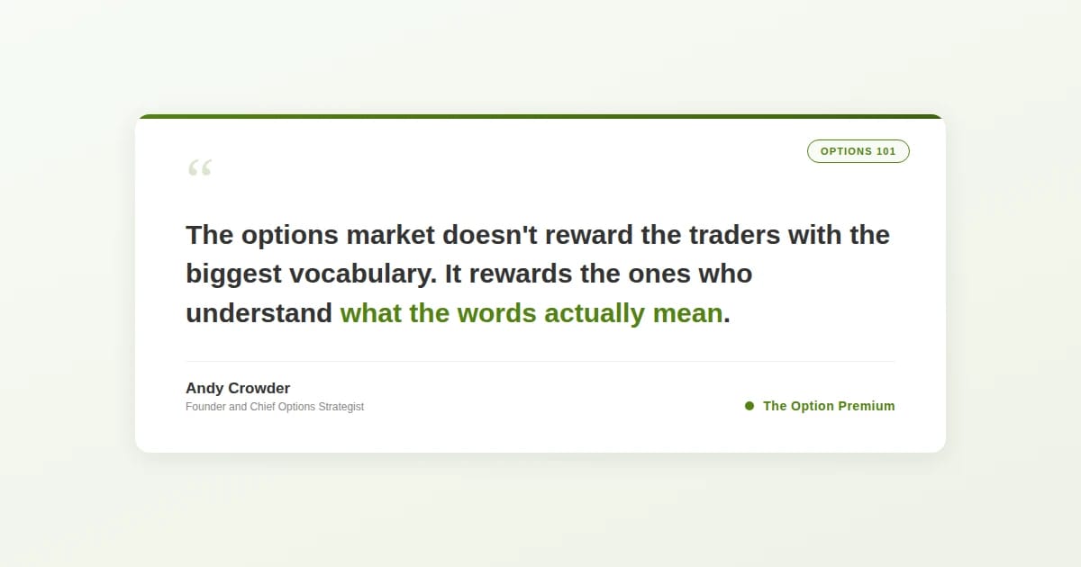 The options market doesn't reward the traders with the biggest vocabulary. It rewards the ones who understand what the words actually mean.